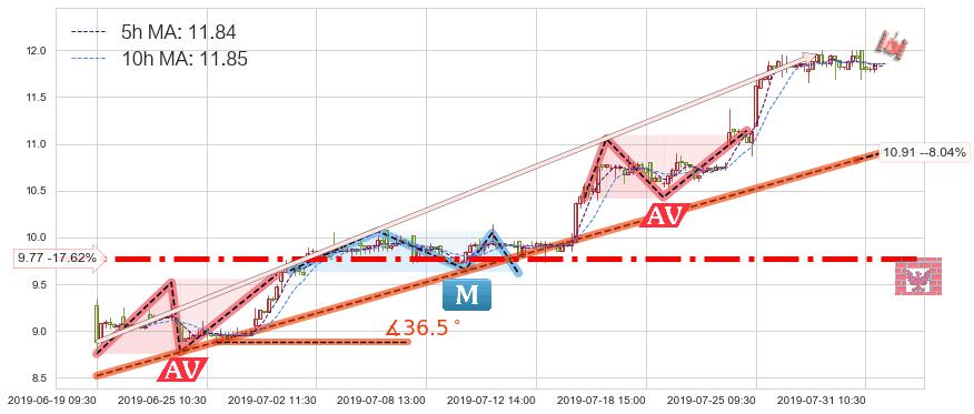 2019-07-12: 第一支撑位9.77有效抑制了下跌浪,成功阻止了价格的继续下跌。