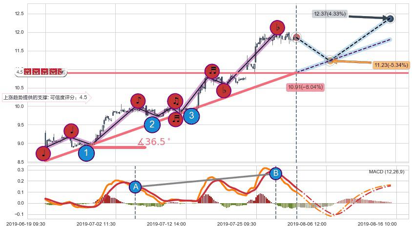 ➣ 预测:2019-08-16 10:00,【继续上扬】稳定目前上涨趋势的前提下,预测价格:12.37