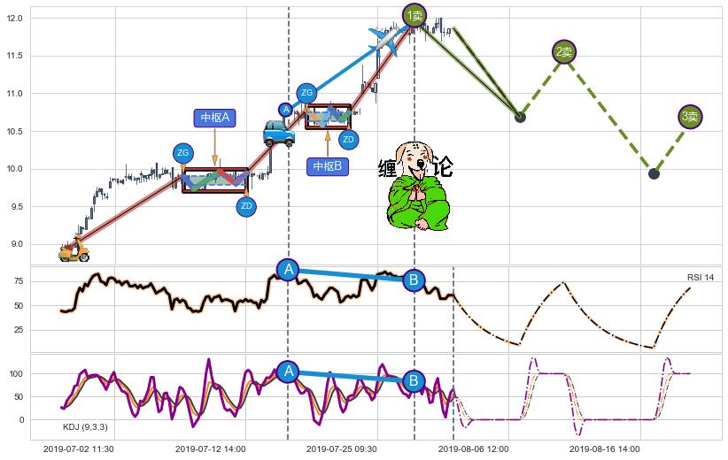 ➢ 缠论价格❶卖比A点高 ⤴,【KDJ】指标B点比A点低 ⤵️