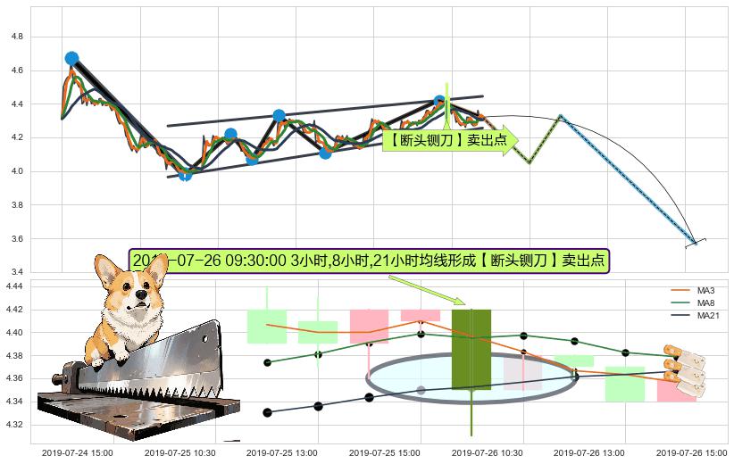 🍖 长线趋势跟踪组合短线均值回复[强支撑信号]2019-06-17 09:30-2019-07-29 15:00上升趋势依然成立(上涨趋势跟踪依然可行),短线价格略微下行回调(均值回复猜想),即将接近趋势提供的未破位的支撑价格:4.24。