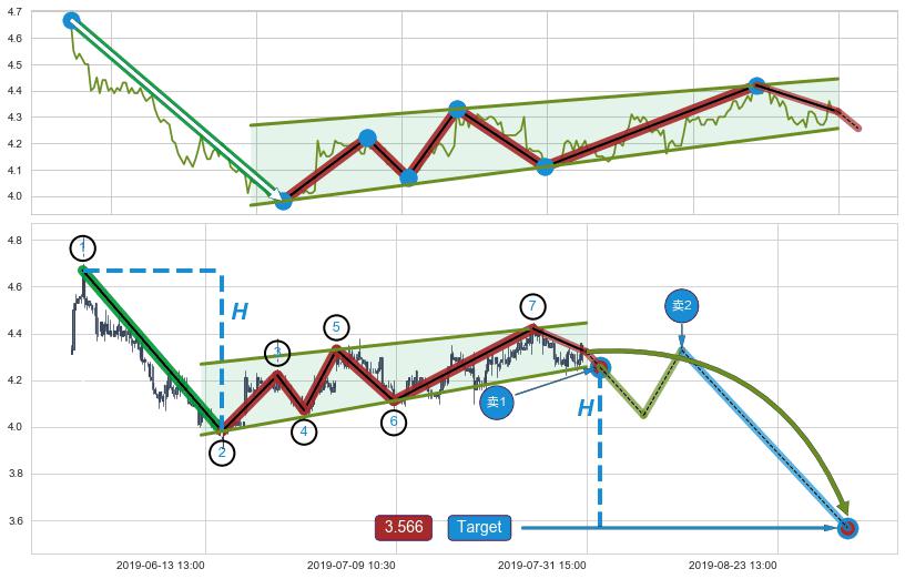 ➣ 最小中继整理跌幅→𝐇: 0.6900 (𝐇旗杆的长度:旗杆起点→顶点)