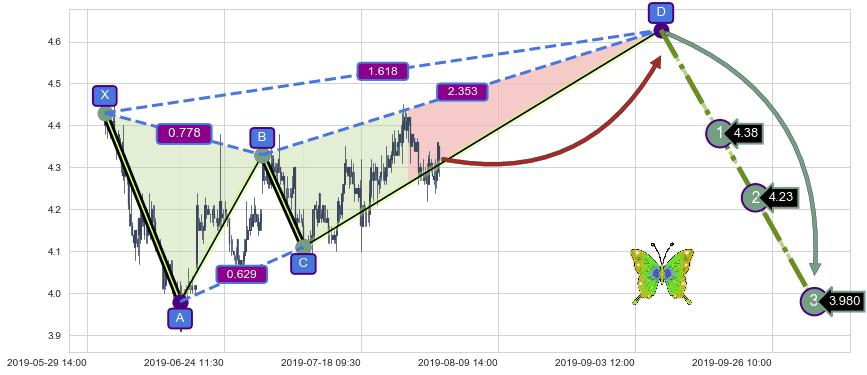 ➣ 未完成【蝴蝶】形态起点X: 05-31:15, 已到达C点: 07-09:09, 预测最终D点: 09-06:13, 共382交易小时