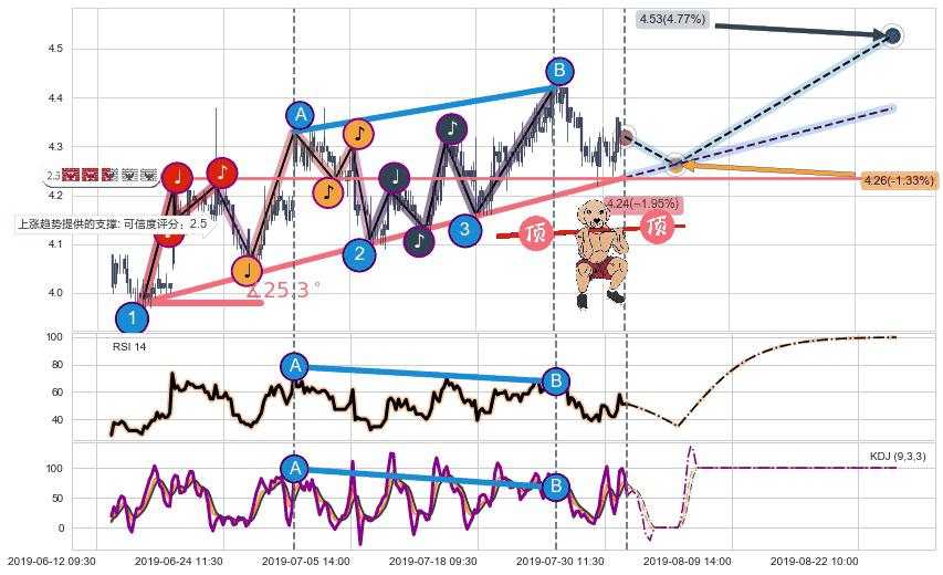 ➣ 预测:2019-08-26 13:00,【继续上扬】稳定目前上涨趋势的前提下,预测价格:4.53