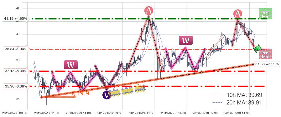 ♘ 阻力价格位41.19,可信任强度74.70%,距离最后交易2019-07-31 15:00形成的收盘价格39.25相差 +4.95%
