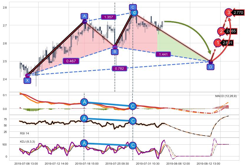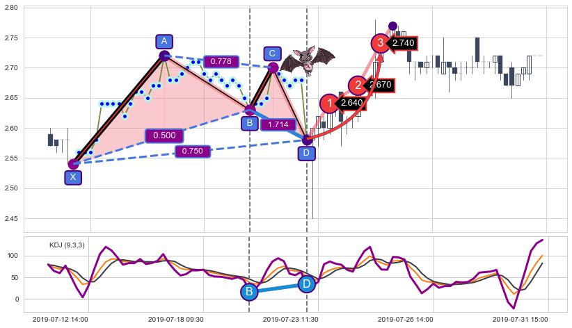 ➣ 已完成【蝙蝠】形态起点X: 07-12:10, 终点D: 07-23:09, 共42交易小时