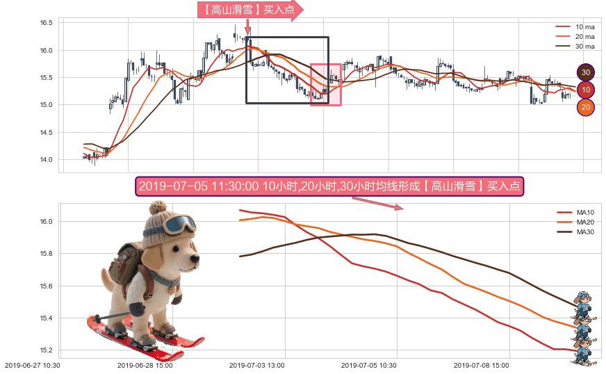 ⚀ 2019-07-02 15:00:00小时-2019-07-09 15:00:00小时显现 10小时-20小时-30小时均线 【高山滑雪】买入点 看多信号,后市看涨,买入