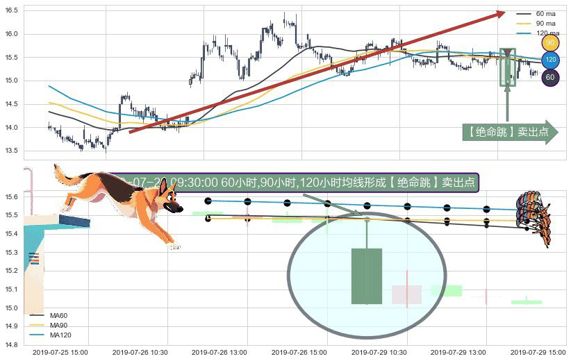 ⚀ 2019-07-29 09:30:00小时显现 60小时-90小时-120小时均线 【绝命跳】卖出点 看空信号,后市看跌,卖出