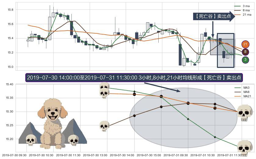 ⚀ 2019-07-30 15:00:00-小时至2019-07-31 11:30:00-小时显现 3小时-8小时-21小时均线 【死亡谷】卖出点 看空信号,后市看跌,卖出