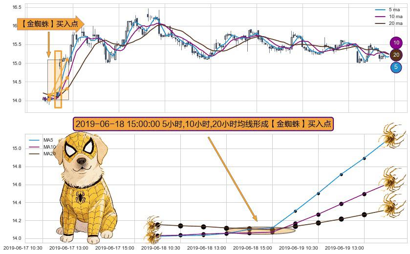 ⚀ 2019-06-18 15:00:00小时显现 5小时-10小时-20小时均线 【金蜘蛛】买入点 看多信号,后市看涨,买入