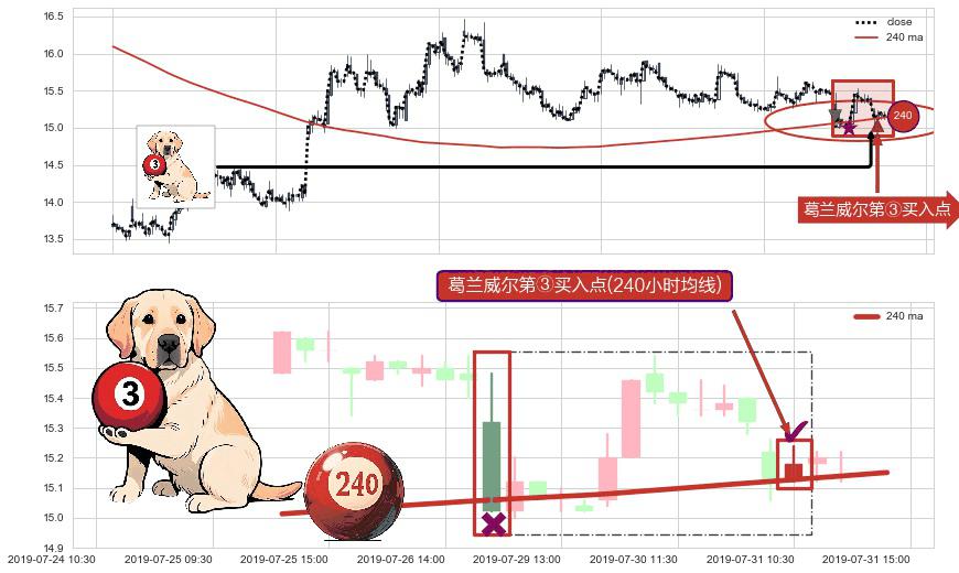 ⚀ 2019-07-31 10:30:00-小时显现 葛兰威尔均线 240小时均线 第③买入点 上升趋势的中继信号,后市看涨,买进信号