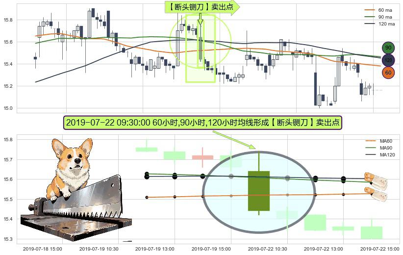 ⚀ 2019-07-22 09:30:00小时显现 60小时-90小时-120小时均线 【断头铡刀】卖出点 看空信号,后市看跌,卖出