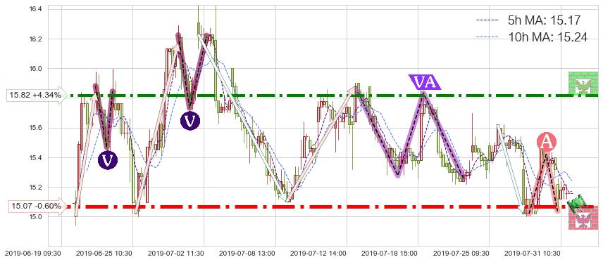 ♘ 支撑价格位15.07,可信任强度91.88%,距离最后交易2019-07-31 15:00形成的收盘价格15.16相差 -0.60%