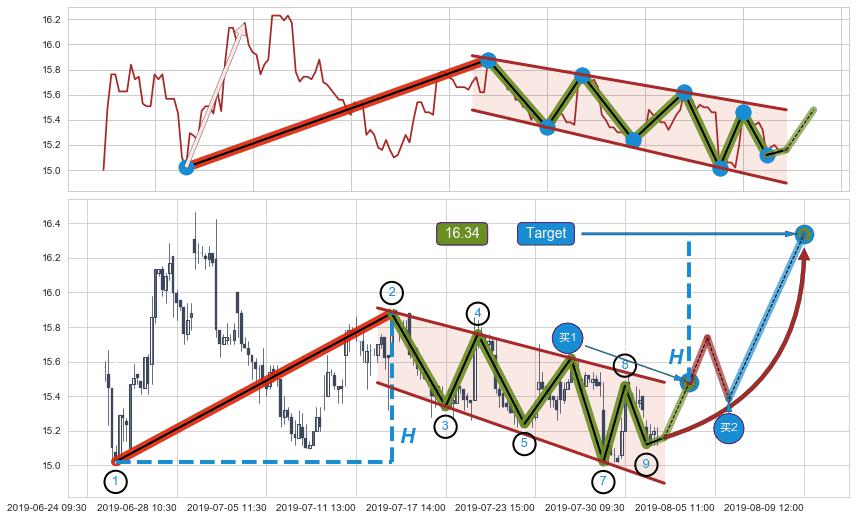 ➢ 【仅预测突破】最后价格:15.16与预测突破价格:15.48→【空间中等】后续最小【整理】第一目标价格→(08-09:12: 16.34 )