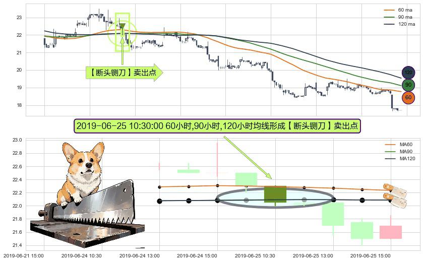 形态多维评估: ⚀ 2019-06-25 10:30:00小时显现 60小时-90小时-120小时均线 【断头铡刀】卖出点 看空信号,后市看跌,卖出