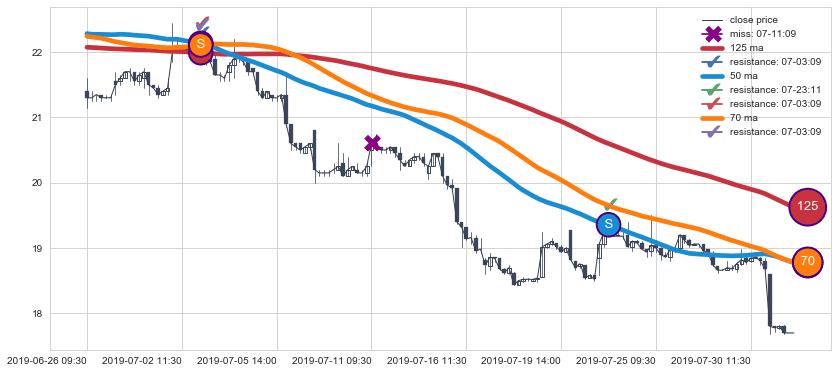 下跌趋势06-26 09:30-07-31 15:00,均线50, 125, 70确认关键阻力2处