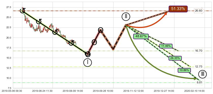 ➣ 大趋势循环浪继续向下概率48.67%