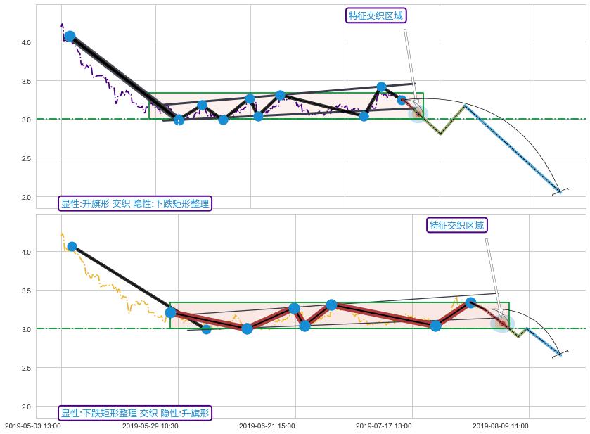 ➣ 【未确认突破,预测即将形成突破】升⚑旗形起点:05-07:09, 预测突破点:08-02:13,形态共364交易小时