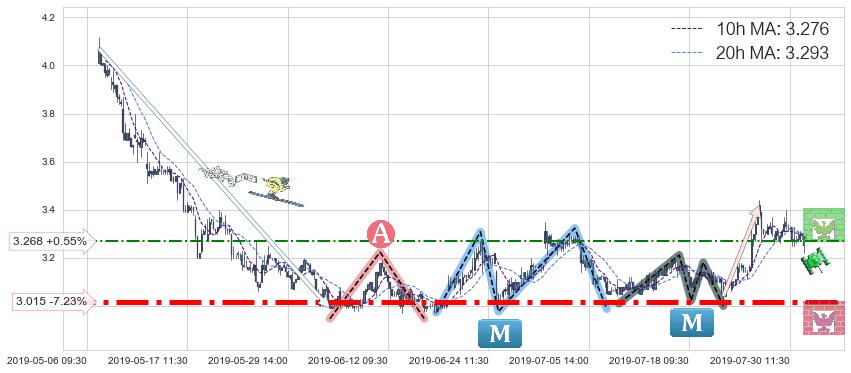 ♘ 阻力价格位3.268,可信任强度51.31%,距离最后交易2019-07-31 15:00形成的收盘价格3.250相差 +0.55%