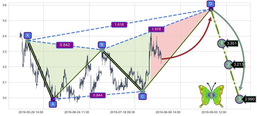 ➣ 未完成【蝴蝶】形态起点X: 05-22:09, 已到达C点: 07-22:15, 预测最终D点: 08-26:14, 共377交易小时