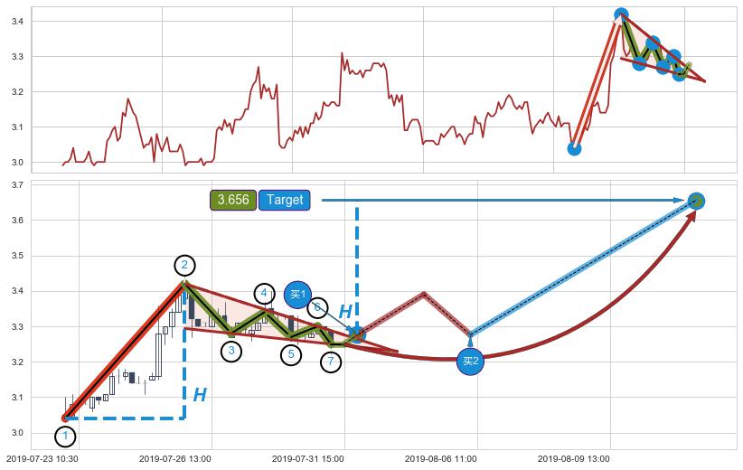 ➢ 最小中继整理涨幅→𝐇: 0.38000 (𝐇楔型旗杆的长度:楔型起点→顶点)