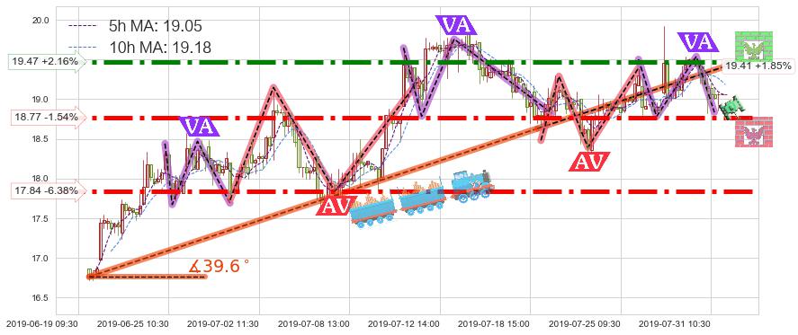 ♘ 阻力价格位19.47,可信任强度97.91%,距离最后交易2019-07-31 15:00形成的收盘价格19.06相差 +2.16%