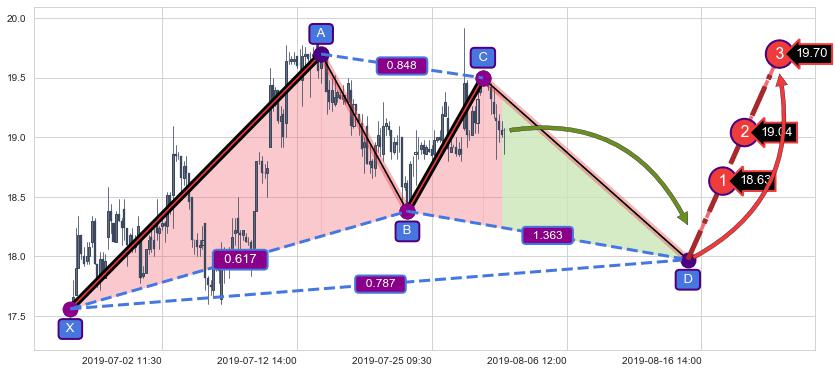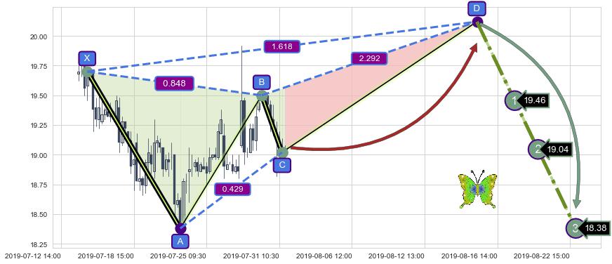 ➣ 未完成【蝴蝶】形态起点X: 07-16:10, 已到达C点: 07-31:11, 预测最终D点: 08-15:13, 共133交易小时