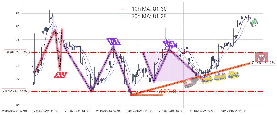 ♘ 支撑价格位76.09,可信任强度57.19%,距离最后交易2019-08-02 15:00形成的收盘价格81.30相差 -6.41%