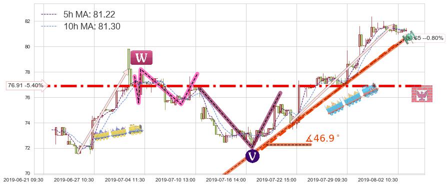 ➢ 预测:2019-08-05 12:00,【小幅回撤】稳定目前上涨趋势的前提下,预测价格:81.01