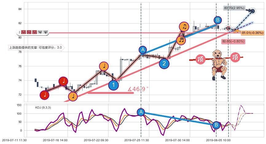➣ 预测:2019-08-06 15:00,【继续上扬】稳定目前上涨趋势的前提下,预测价格:83.70
