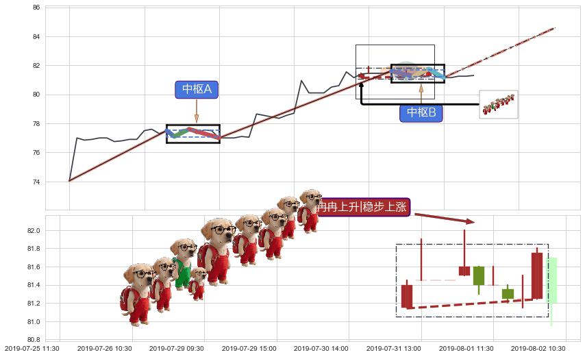 🍖 长线趋势跟踪组合短线均值回复[强支撑信号]2019-07-12 15:00-2019-08-02 09:30上升趋势依然成立(上涨趋势跟踪依然可行),短线价格略微下行回调(均值回复猜想),即将接近趋势提供的未破位的支撑价格:80.65。