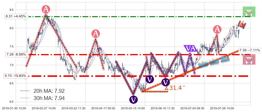 ♘ 阻力价格位8.31,可信任强度55.49%,距离最后交易2019-07-31 15:00形成的收盘价格7.96相差 +4.45%