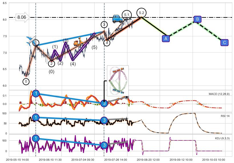 ➢ 5.1: 预测当前第5浪位置(07-26:13, 8.05),仍然有上升空间
