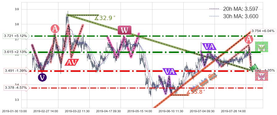 ♘ 阻力价格位3.615,可信任强度96.50%,距离最后交易2019-07-31 15:00形成的收盘价格3.540相差 +2.13%