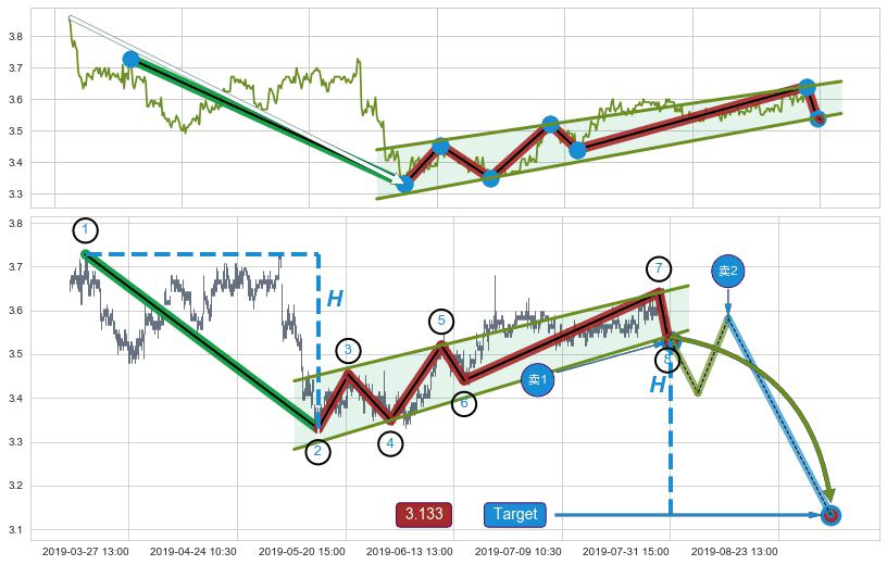 ➣ 最小中继整理跌幅→𝐇: 0.39800 (𝐇旗杆的长度:旗杆起点→顶点)