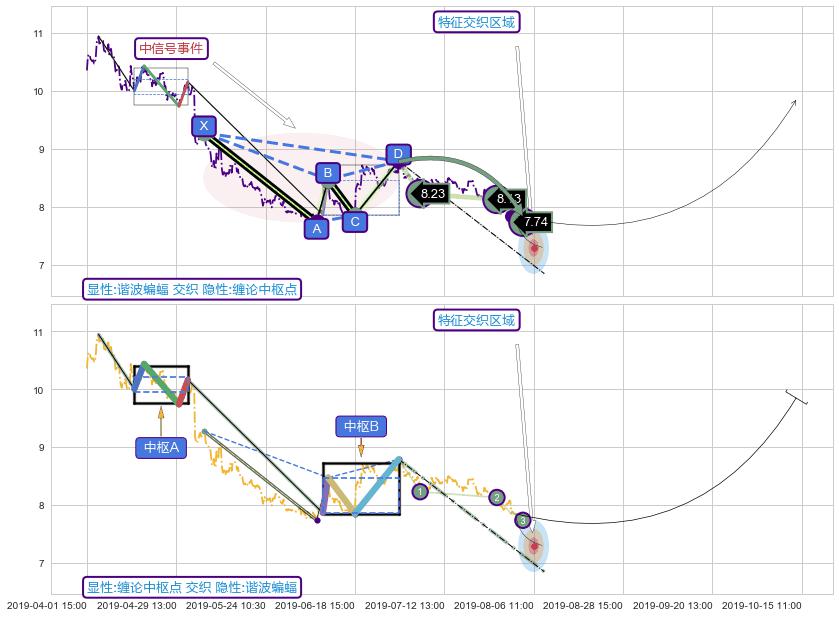 从2019-07-23 10:30至2019-07-31 15:00,共包含41个小时,阶段股价下跌-3.91%,阶段股价变动位移路程比: 1 : 3