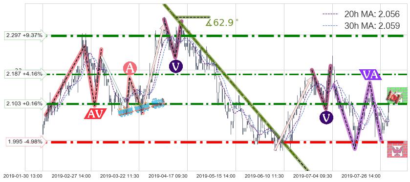 ♘ 阻力价格位2.297,可信任强度86.65%,距离最后交易2019-07-31 15:00形成的收盘价格2.100相差 +9.37%