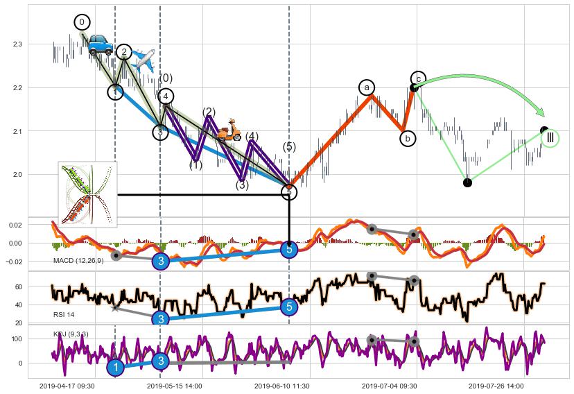 ➢ 1,3,5驱动浪MACD, RSI, KDJ走势都出现【常规背离】反转信号增强