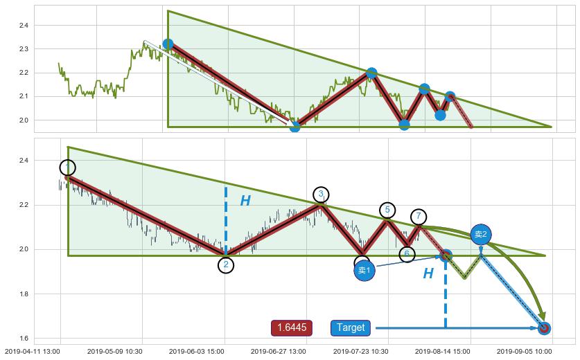 ➢ 最后的下跌趋势2019-04-04 09:30至2019-06-14 11:30:存在突破迹象,后续小反弹或者反转上涨