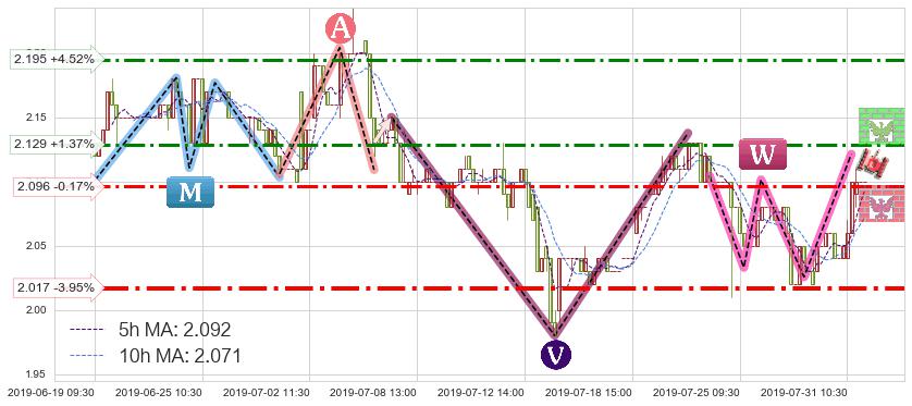 ♘ 阻力价格位2.195,可信任强度62.31%,距离最后交易2019-07-31 15:00形成的收盘价格2.100相差 +4.52%