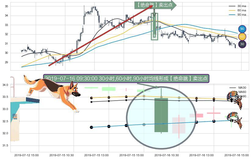 ⚀ 2019-07-16 09:30:00小时显现 30小时-60小时-90小时均线 【绝命跳】卖出点 看空信号,后市看跌,卖出