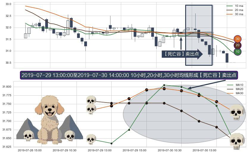 ⚀ 2019-07-29 14:00:00-小时至2019-07-30 14:00:00-小时显现 10小时-20小时-30小时均线 【死亡谷】卖出点 看空信号,后市看跌,卖出