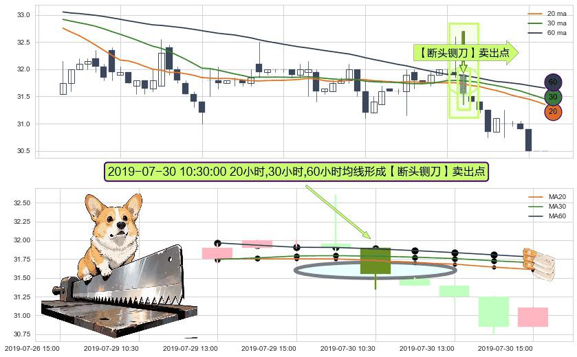 ⚀ 2019-07-30 10:30:00小时显现 20小时-30小时-60小时均线 【断头铡刀】卖出点 看空信号,后市看跌,卖出