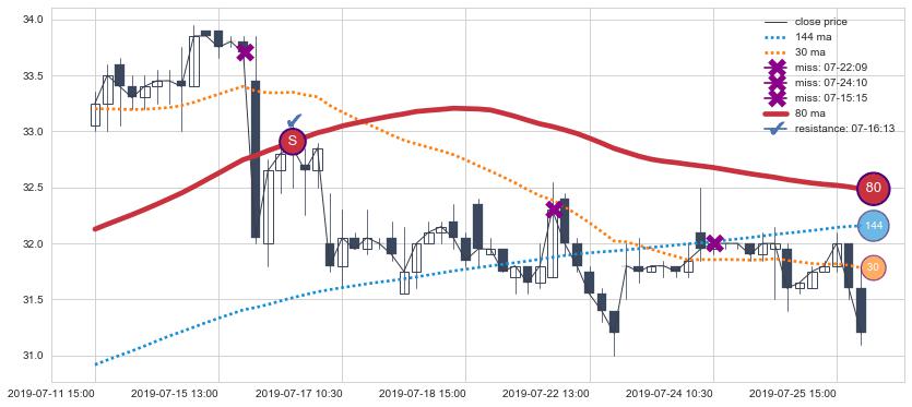 ⚂ 2019-07-29 14:00:00-小时均线向上突破,2019-07-30 09:30:00-小时重新下穿均线破位,均线阻力再次生效