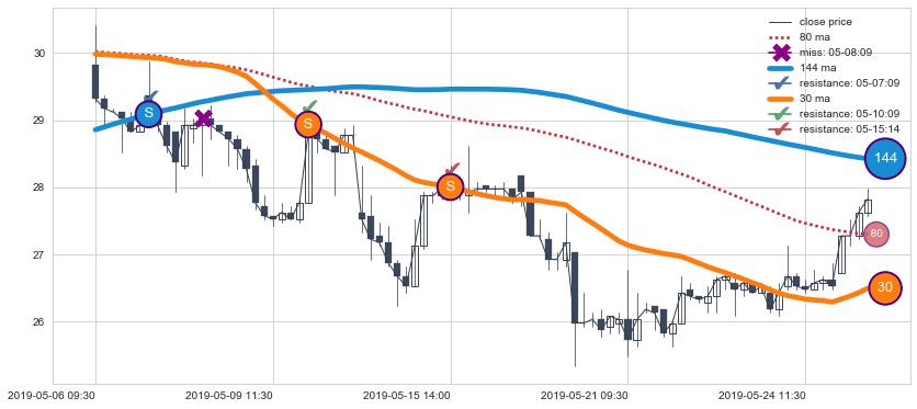 ⚃ 在破位点附近ma走势已有下垂迹象,稍后的走势中ma下降趋势明显,信号【可信度高】