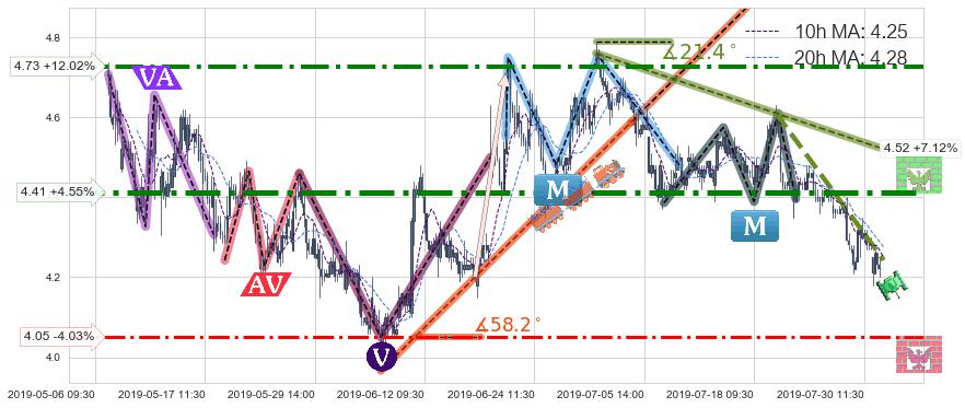 ♘ 阻力价格位4.41,可信任强度87.03%,距离最后交易2019-07-31 15:00形成的收盘价格4.22相差 +4.55%