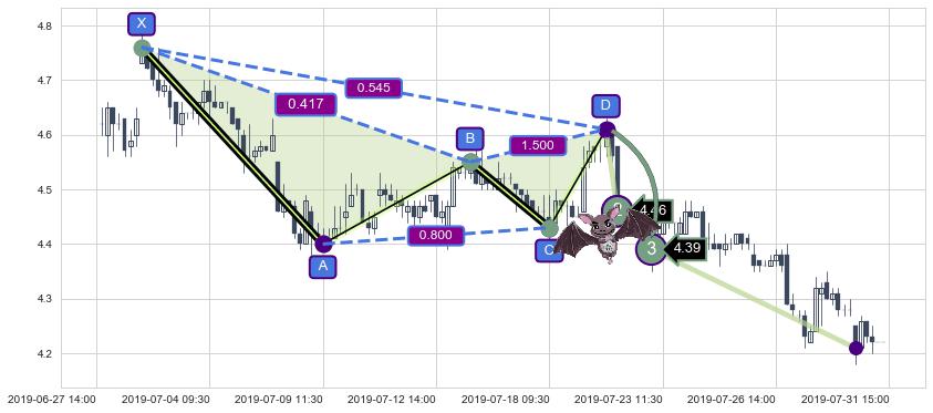 ➣ 已完成【蝙蝠】形态起点X: 07-02:09, 终点D: 07-19:14, 共83交易小时