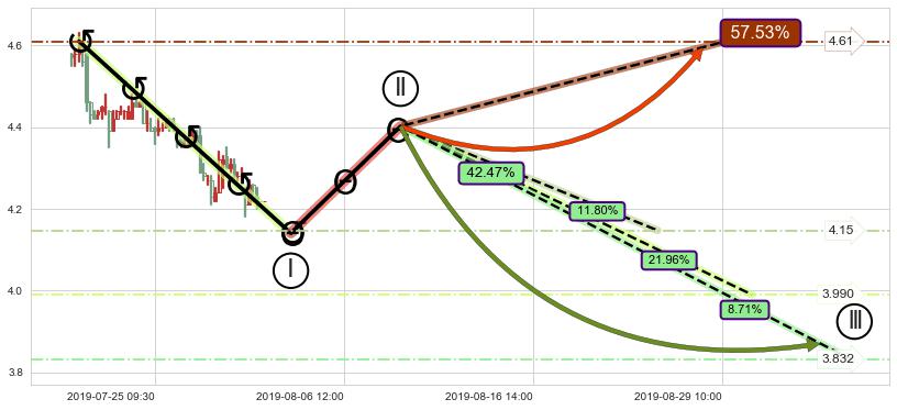 ➣ 循环浪继续向下【平均值】位置(08-30:12, 3.990),匹配聚类样本比例51.72%, 可能性概率21.96%