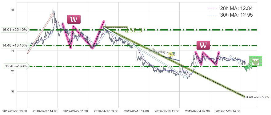 ♘ 阻力价格位12.46,可信任强度68.88%,距离最后交易2019-07-31 15:00形成的收盘价格12.80相差 -2.63%
