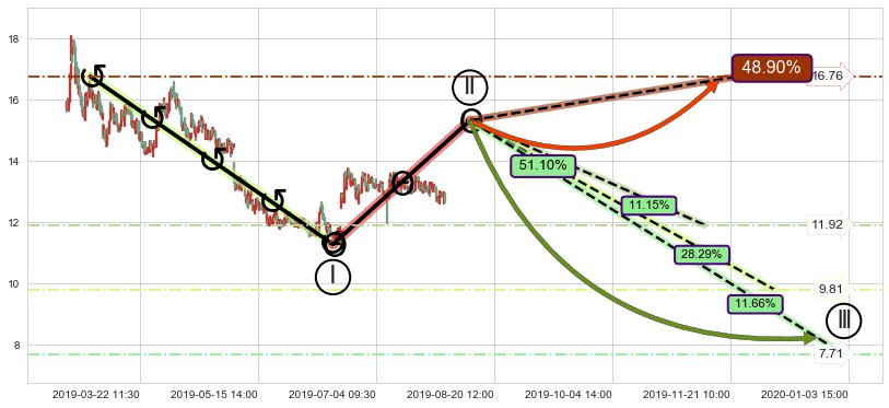 ➢ 如买入理由为abc向上反弹,但高概率大级别循环浪继续下跌,继续下跌概率51.10%