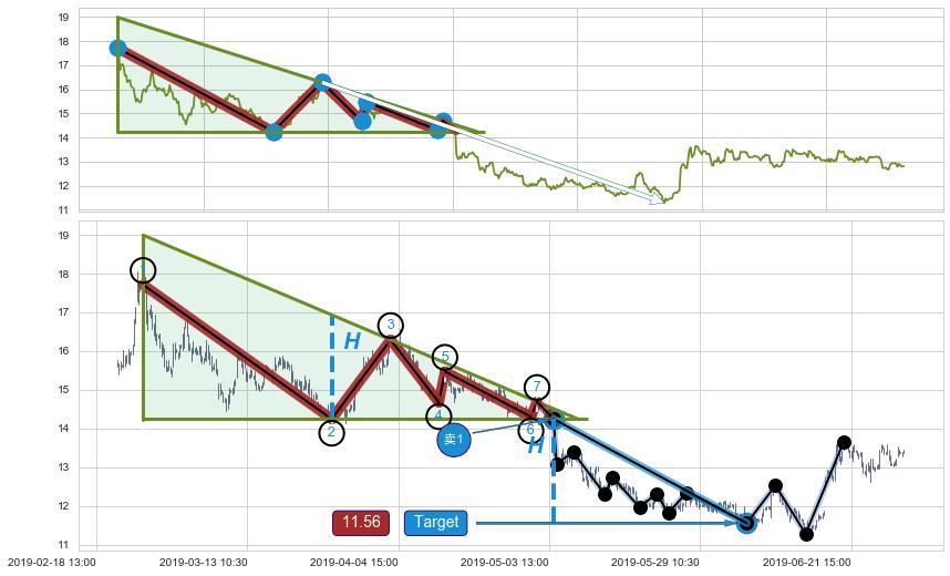 ➢ 最后的下跌趋势2019-04-04 09:30至2019-06-20 15:00:存在突破迹象,后续小反弹或者反转上涨
